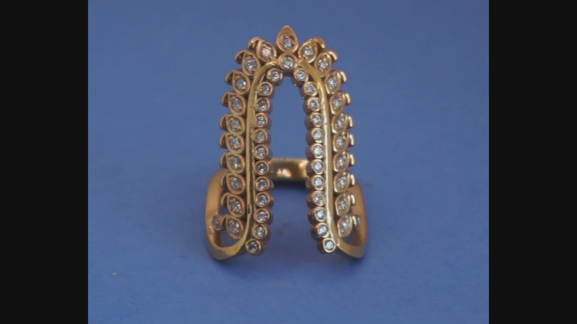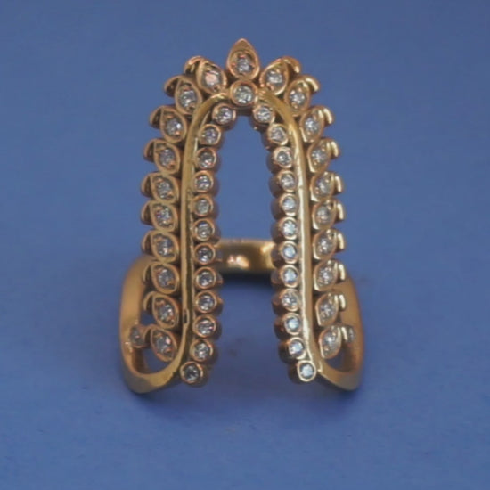 Crafted in 14K gold and set with brilliant lab-grown diamonds, the design curves gracefully around the finger, creating a bold yet sophisticated presence. Each diamond is carefully studded to capture light from every angle, delivering a quiet, confident sparkle.